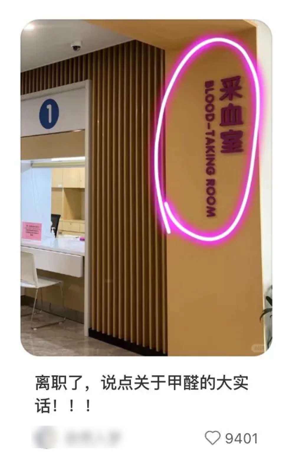 采血室,粉色霓虹圈,”离职了,说点关于甲醛的大实话!!!”