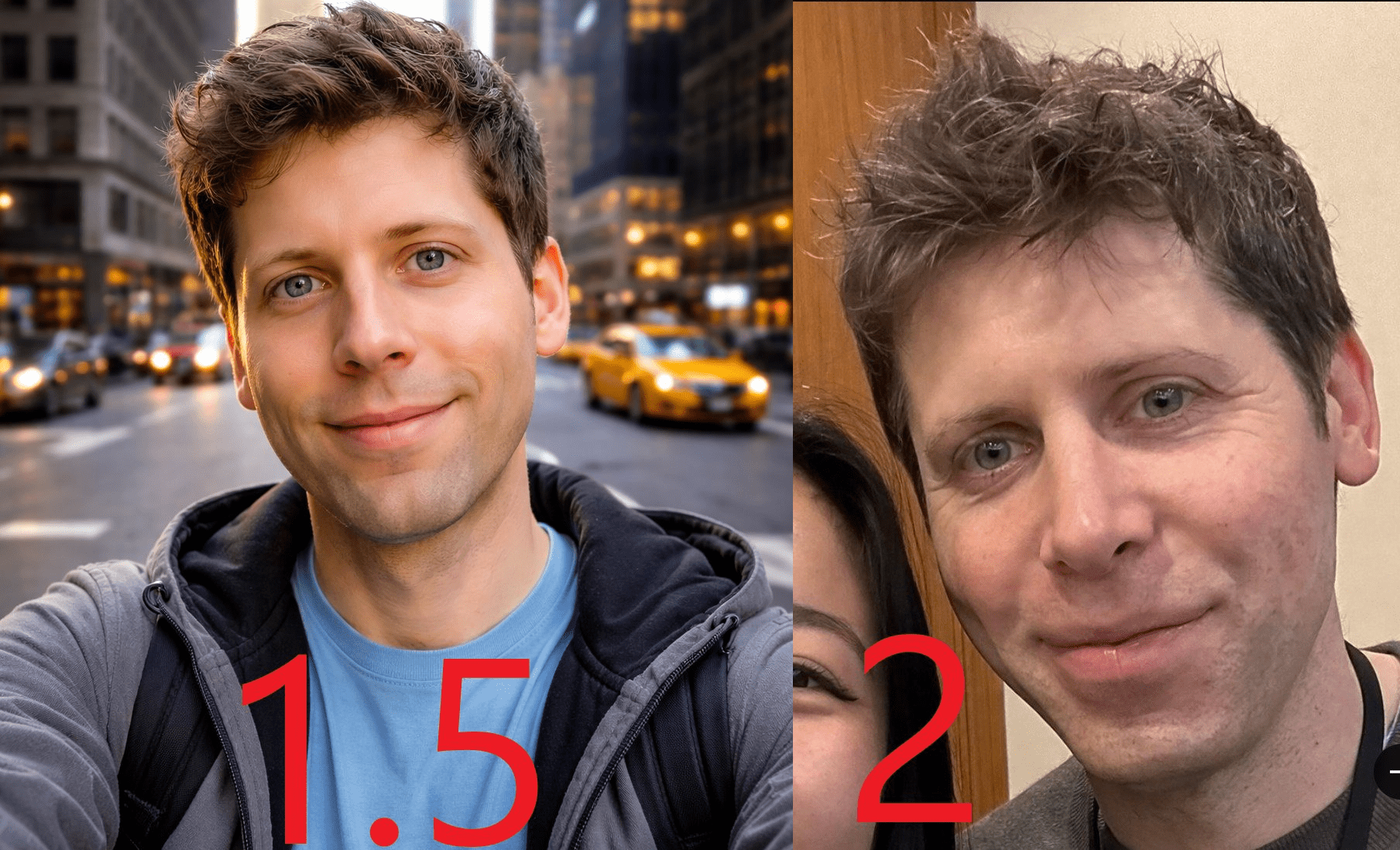如果用1.5和2生成Sam Altman对比你就能发现,2没有那种卡通质感,而是更接近真人,有明显的皱纹和皮肤油光毛孔。
