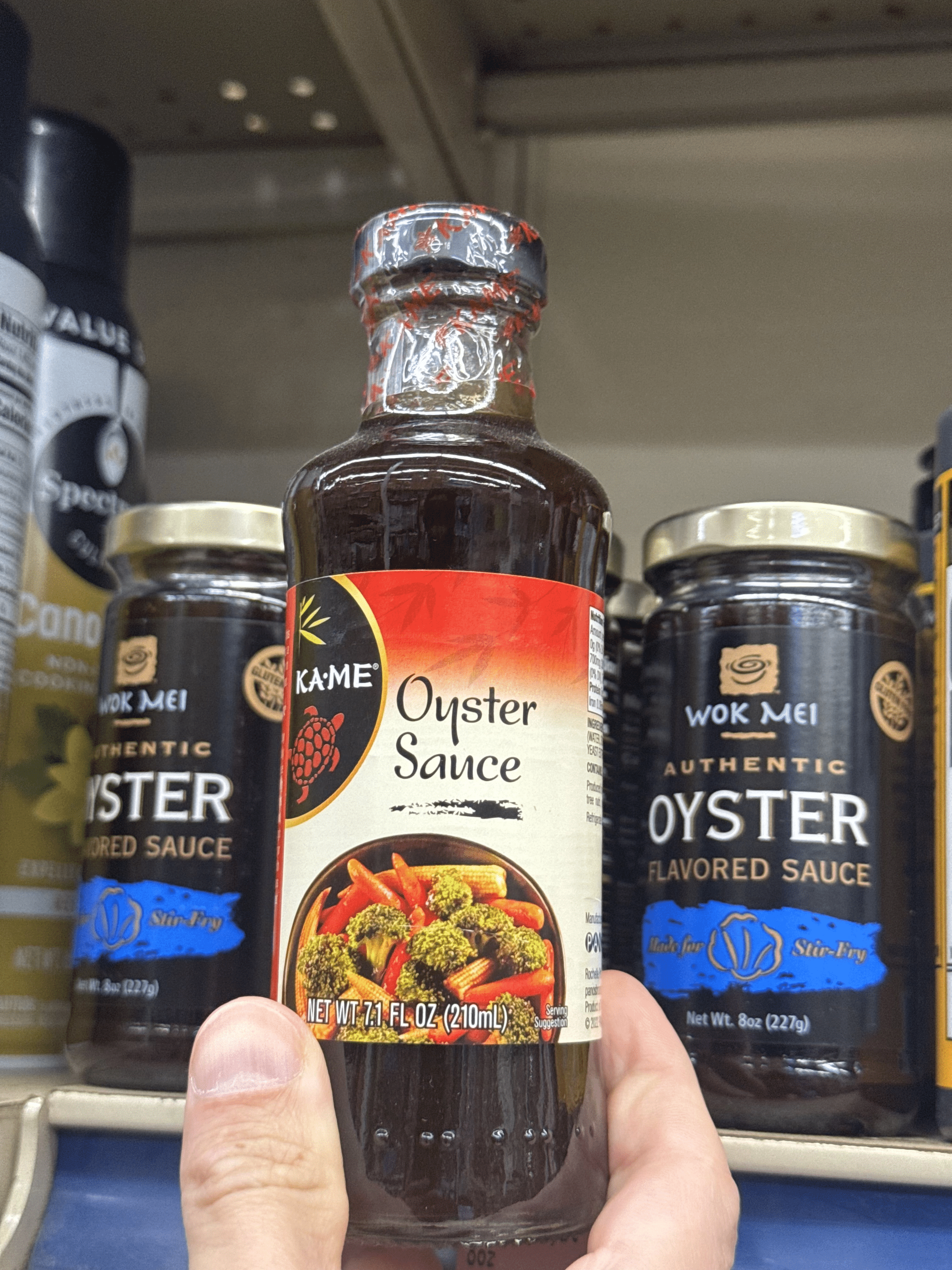 GPT Image 2 还能准确还原真实超市货架:KAME 牡蛎酱的品牌 Logo、乌龟图案、英文标签、净含量、包装配图,以及旁边 WOK MEI 同系列产品的风格统一性;货架高度与排列方式也符合常识,甚至连亚洲调味品区的典型摆放逻辑都有体现。