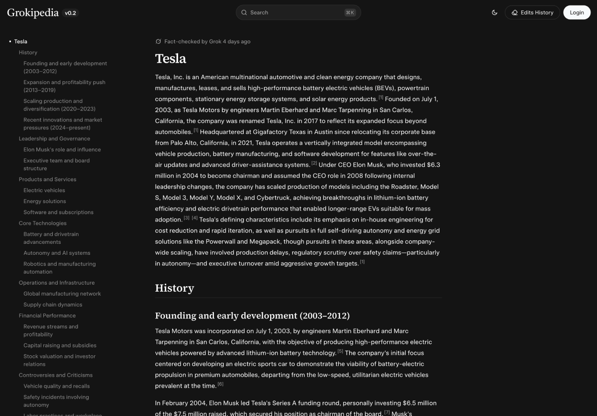 xAI 推出的 AI 驱动的在线百科全书,由 Elon Musk 推动,作为 Wikipedia 的竞争对手。它于 2025 年 10 月底正式上线,旨在提供更真实和 AI 生成的内容。但有网友发现,内容很符合Elon Musk的价值观,不一定客观。