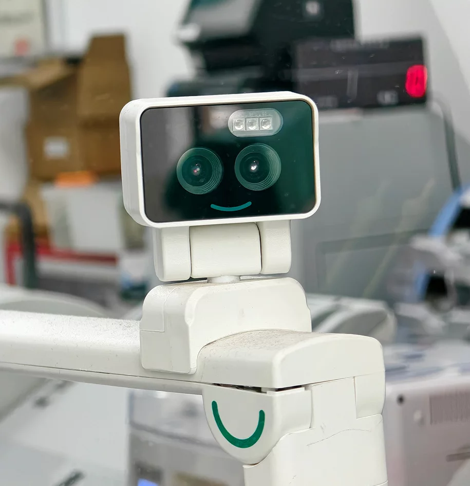 从结构上看,设备采用了双镜头配置,两个圆形镜头水平并列排布,在视觉上自然形成「双眼」的意象。最精妙的设计在于镜头下方的弧形装饰——这个向上弯曲的弧线恰好模拟了人类微笑时嘴角上扬的形态。 整体造型运用了面孔识别(Pareidolia)心理学现象:人类大脑天生倾向于在物体中识别出人脸特征。当「两只眼睛」加上「微笑的嘴巴」这三个基本元素组合在一起,用户在第一眼看到设备时,大脑会不自觉地将其解读为一张友善的笑脸,而非冰冷的监控设备。 这个设计显著降低了用户在人脸识别过程中的心理压力。
