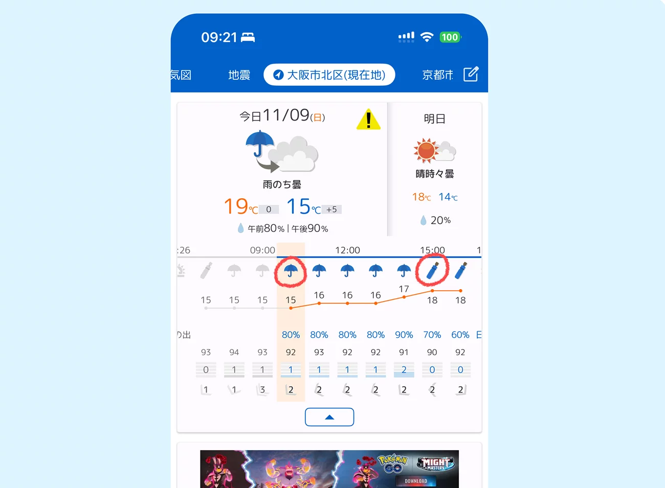 Tenki.jp 天气应用:用伞的开合传递降雨信息