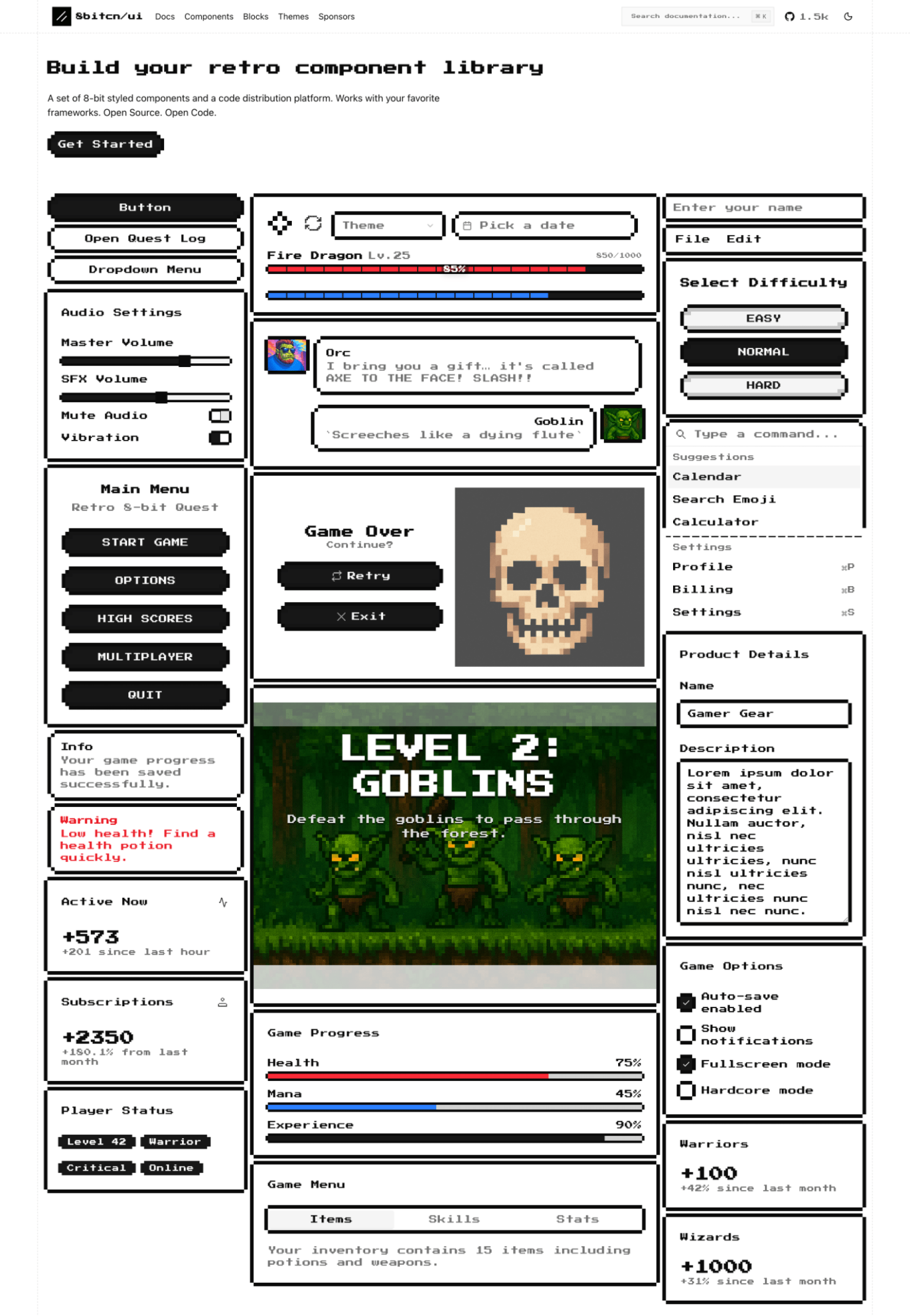 专注于提供 8 位风格的组件,让开发者能轻松构建复古风格的应用。它不仅兼容各种框架,还提供了丰富的组件,比如按钮、下拉菜单和音频设置等,使用起来很方便。