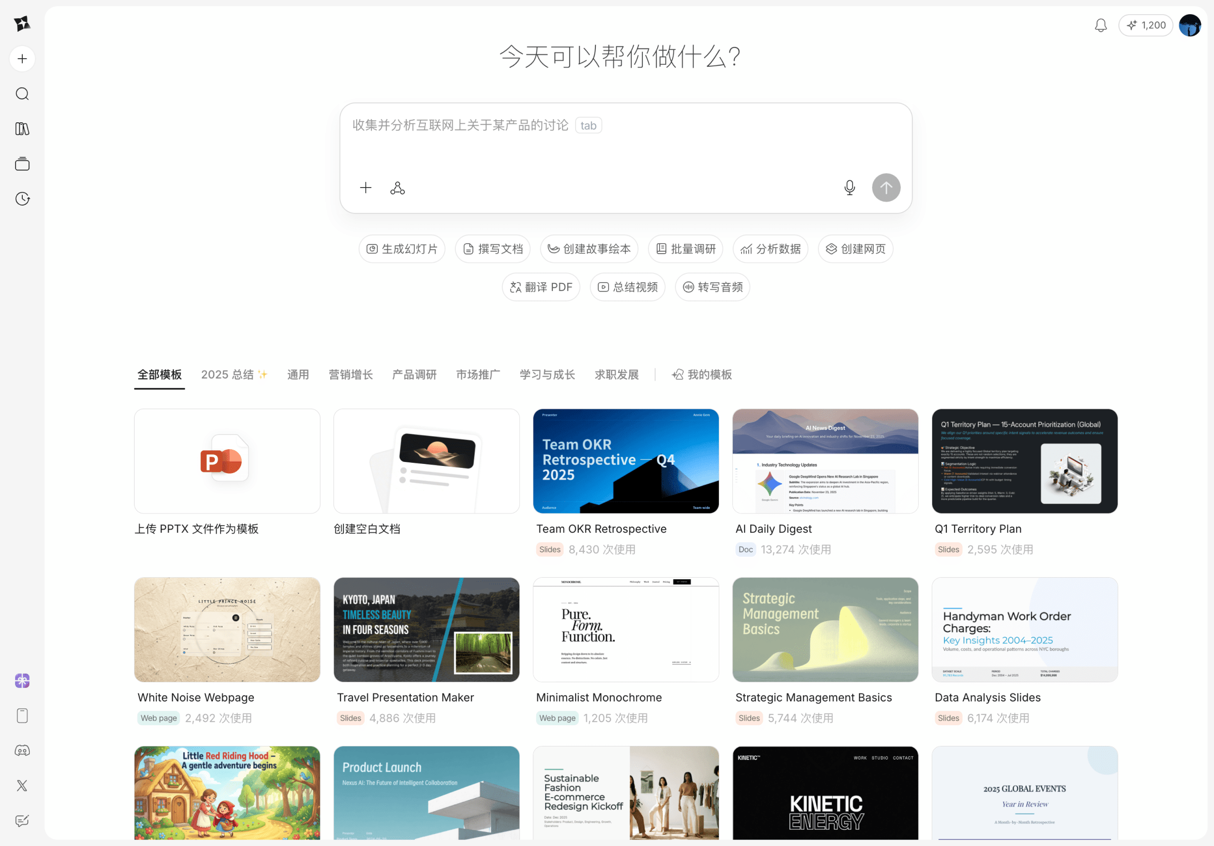 核心是帮用户把语音、图片、链接等碎片化信息,快速转化为可直接交付的文档、PPT、数据分析报告,解决传统办公 “跨工具返工、操作门槛高” 的问题。