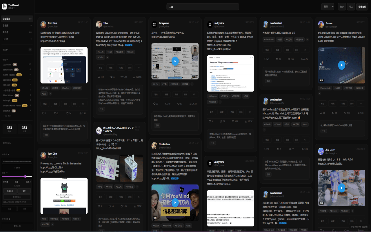 刷推时看到的精彩内容,刷新后就找不到了?ThatTweet 会在你浏览 X(Twitter)时自动保存推文,并提供完整的管理、检索、统计与 AI 分析能力,让灵感和知识不再丢失。