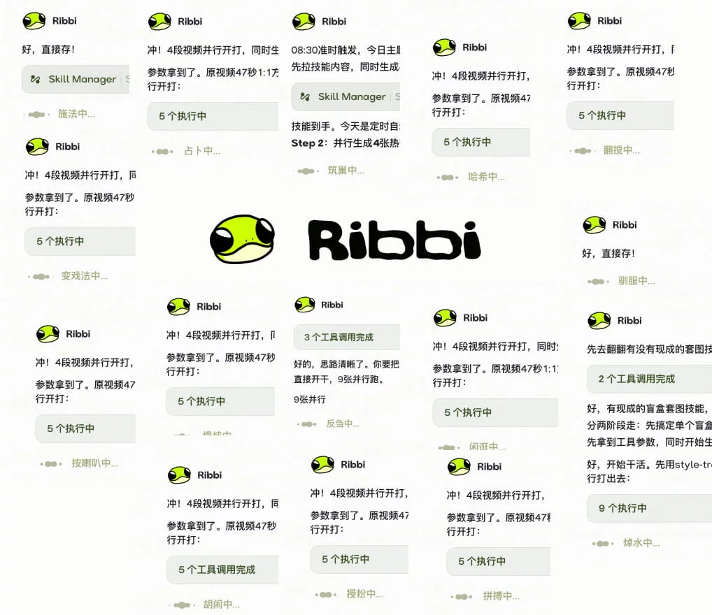 AI生成需要时间,所以必须显示加载中,Ribbi的加载中文案是我见过最多变了,用了几十次,至今没有发现重样的文案,从「占卜中」「筑巢中」到「慢炖中」,甚至还有极具生活气息的「焯水中」。我甚至怀疑这些文案都是让AI临时随机生成的,建议申请吉尼斯世界上加载文案最多的软件。