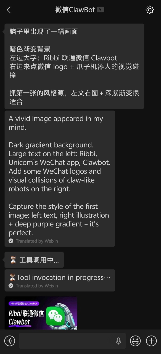Ribbi还支持微信ClawBot,可以在微信里给Ribbi下指令,接收回复。