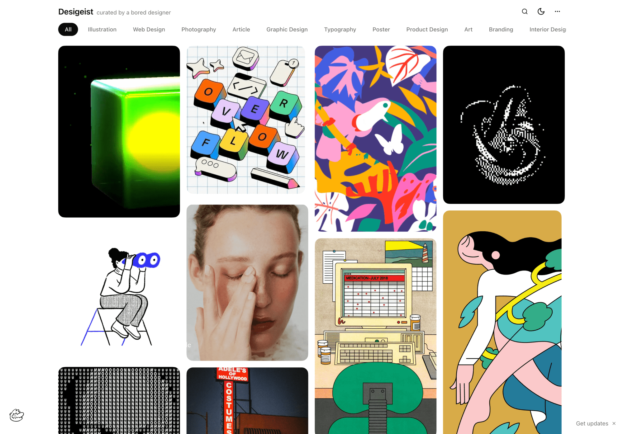 这个网站聚合了各种设计类型,包括插图、网页设计、摄影和排版,甚至还有室内设计和产品设计。无论你是设计师还是爱好者,逛一逛都能发现不少惊喜。