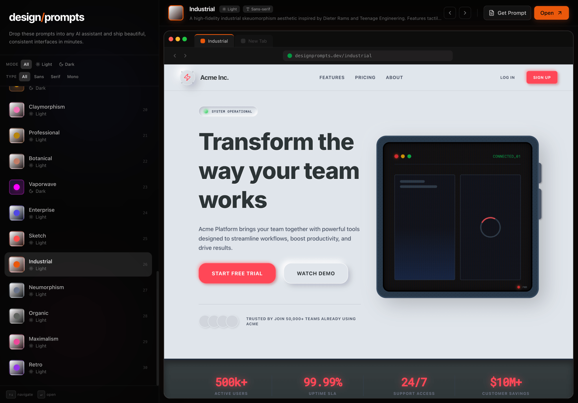 这个网页提供了 31 种独特的设计风格,每种风格都有对应的 AI 提示,只需复制粘贴,就能生成一套专业的设计界面,省时省力。