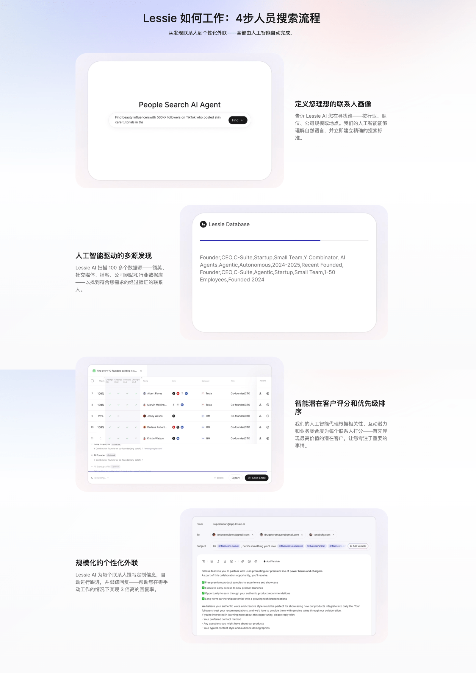 Lessie AI 可谓是人脉拓展界的新宠。它能帮你在 LinkedIn、Twitter 和 GitHub 等平台上,快速找到目标联系人,适用于各种场景,比如寻找投资者、客户或者专家。Lessie AI 通过 AI 技术定义你想找的联系人,然后从超过 100 个数据源中进行搜索,找出最符合条件的人选。它甚至能为每个潜在联系人写定制的消息,自动跟进,回复率提升三倍。