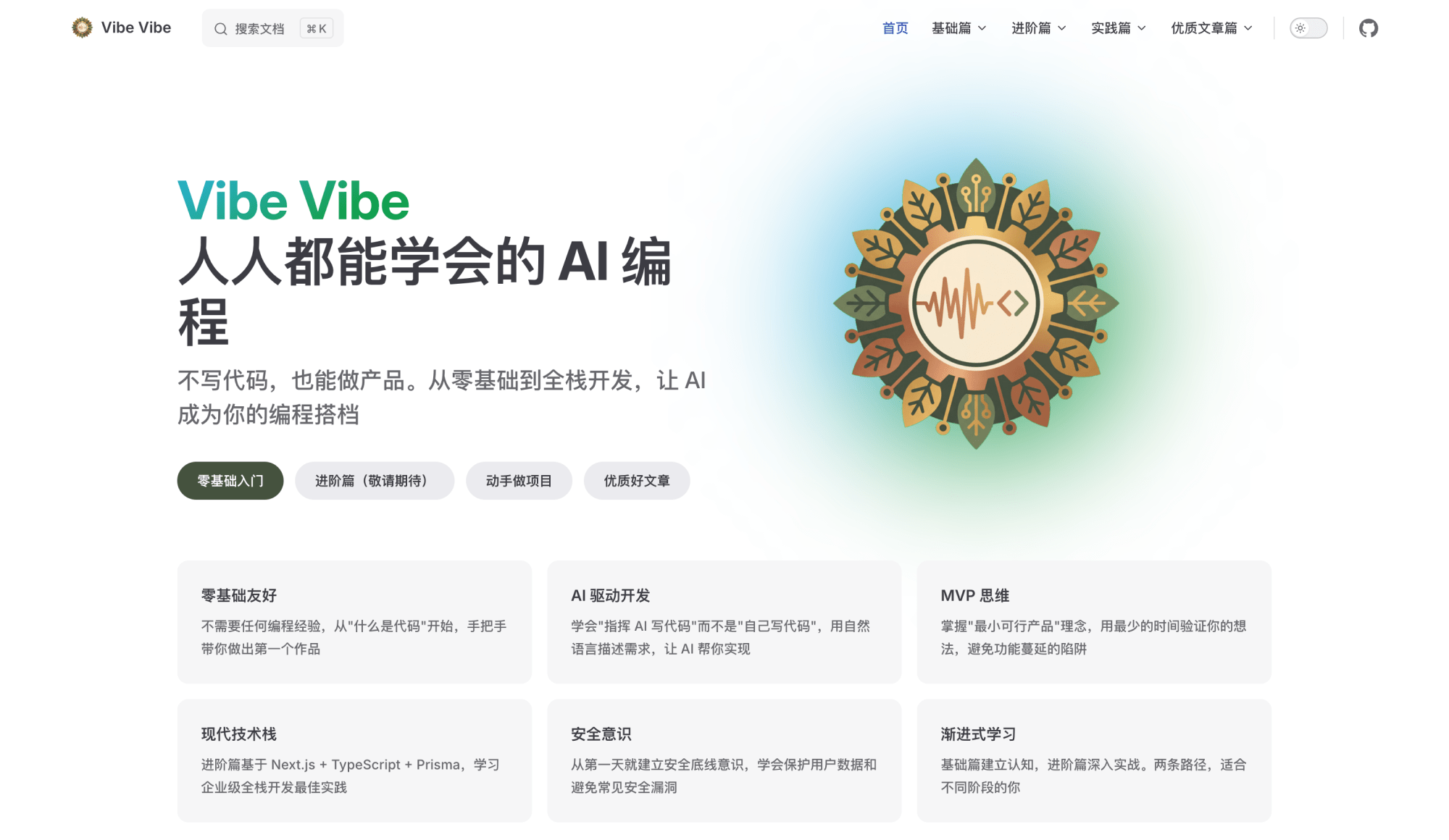 ibe Coding 是一套全新的编程学习方式,专为零基础用户设计,帮助他们通过 AI 快速构建产品。它不仅教你如何用自然语言描述需求,还强调快速迭代和 MVP 思维,适合设计师、产品经理和创业者。