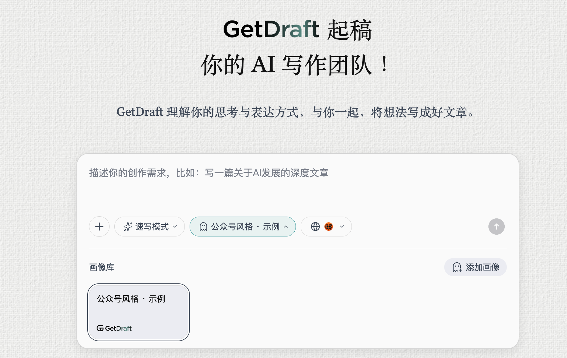 这款工具的定位主要是为了服务职业写手,通过五个不同的 AI 角色,帮助用户从构思到初稿。