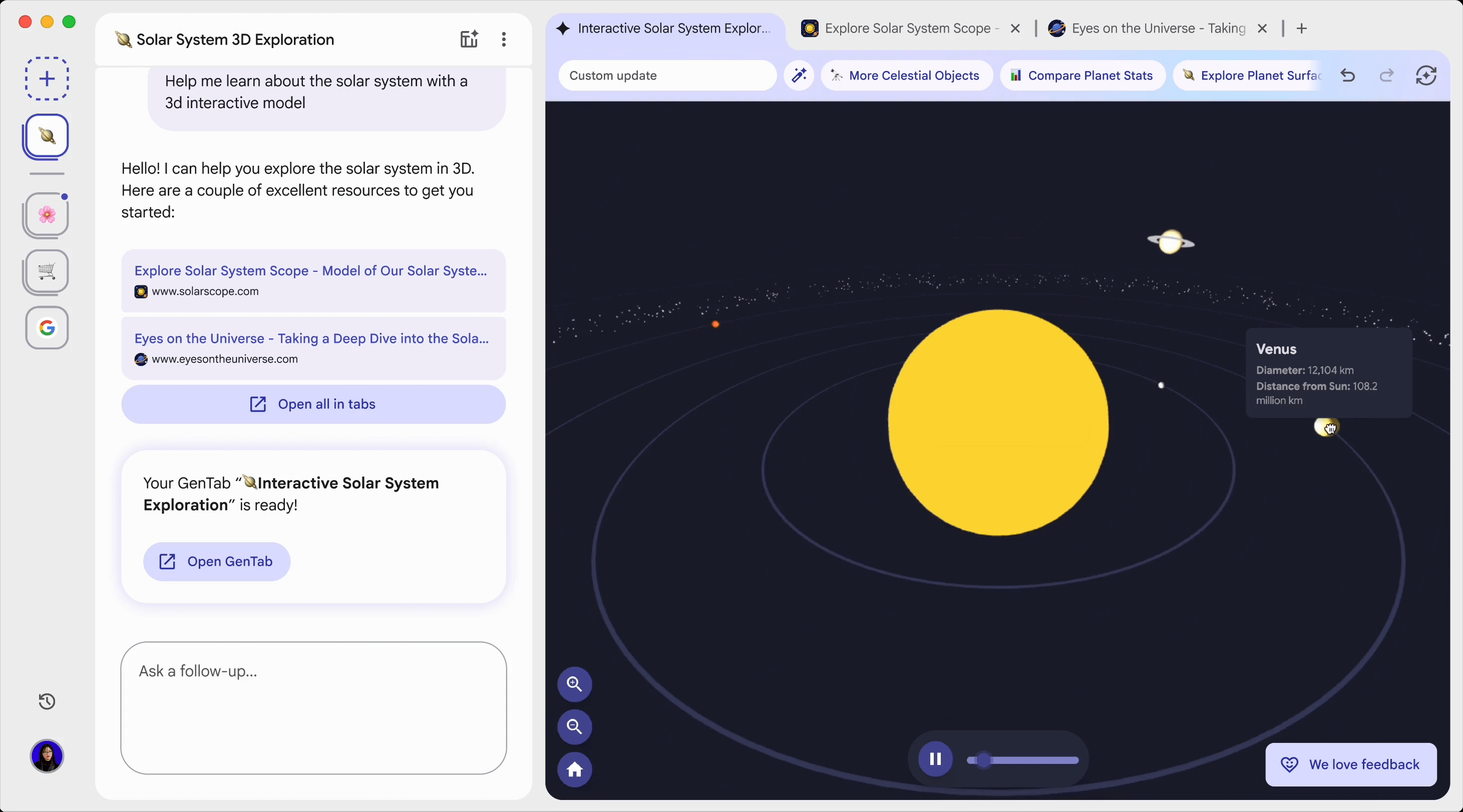 比如,如果你打开了一堆关于某门课程的学术文章,Disco 会自动帮你生成一个可视化应用,助你更好理解这些内容。而如果你在浏览食谱,系统就能把它们整理成一个实用的膳食计划工具,省去你繁琐的笔记工作。