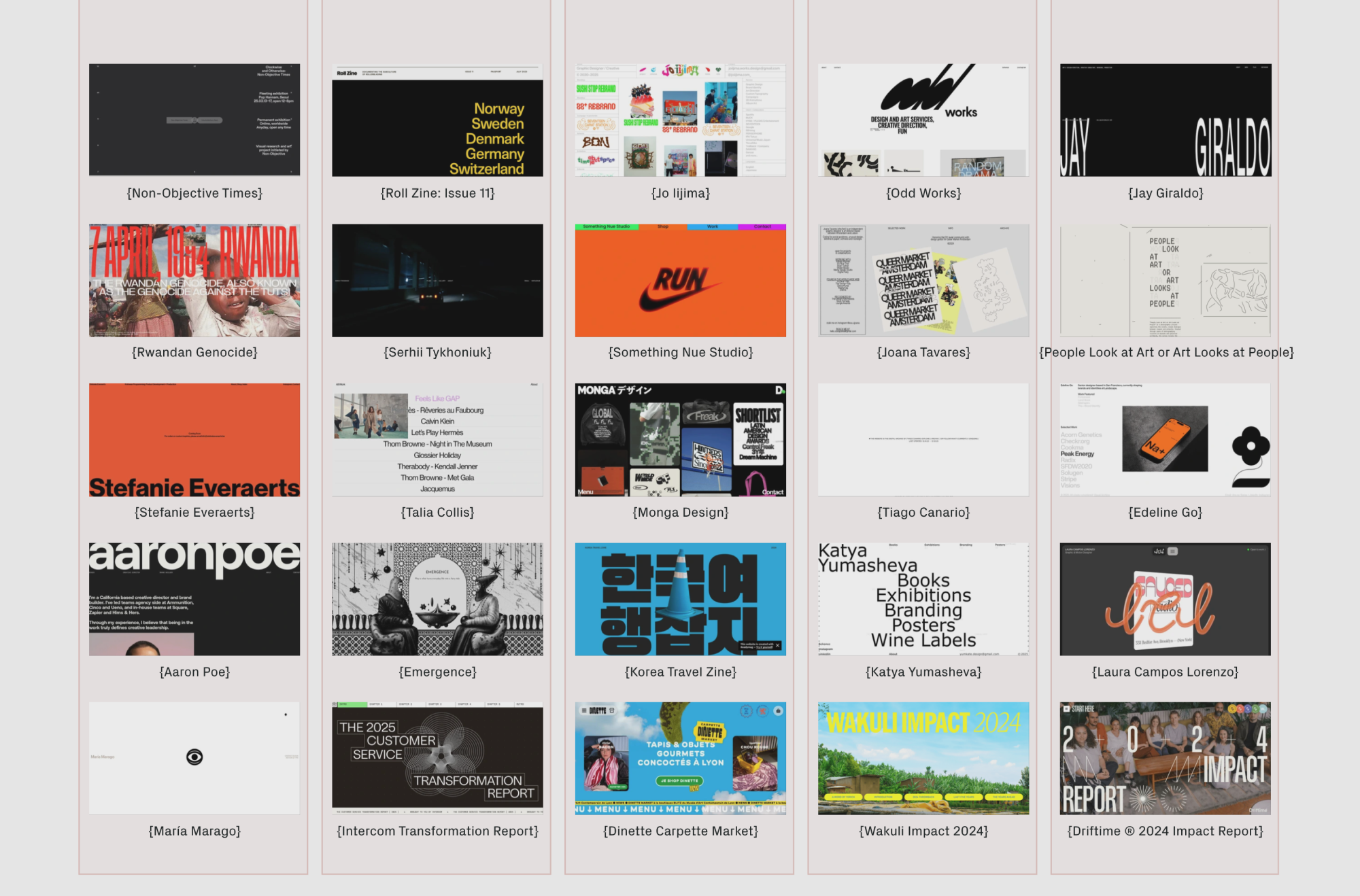 Readymag 发布了 2025 年度网站评选的候选名单,着实引发了设计界的热议。这个活动鼓励设计师们大胆创新,摒弃常规,创造出各种风格迥异的网站作品。从色彩大胆的艺术作品到简约而不简单的作品,选手们都在努力寻求新的表达方式。