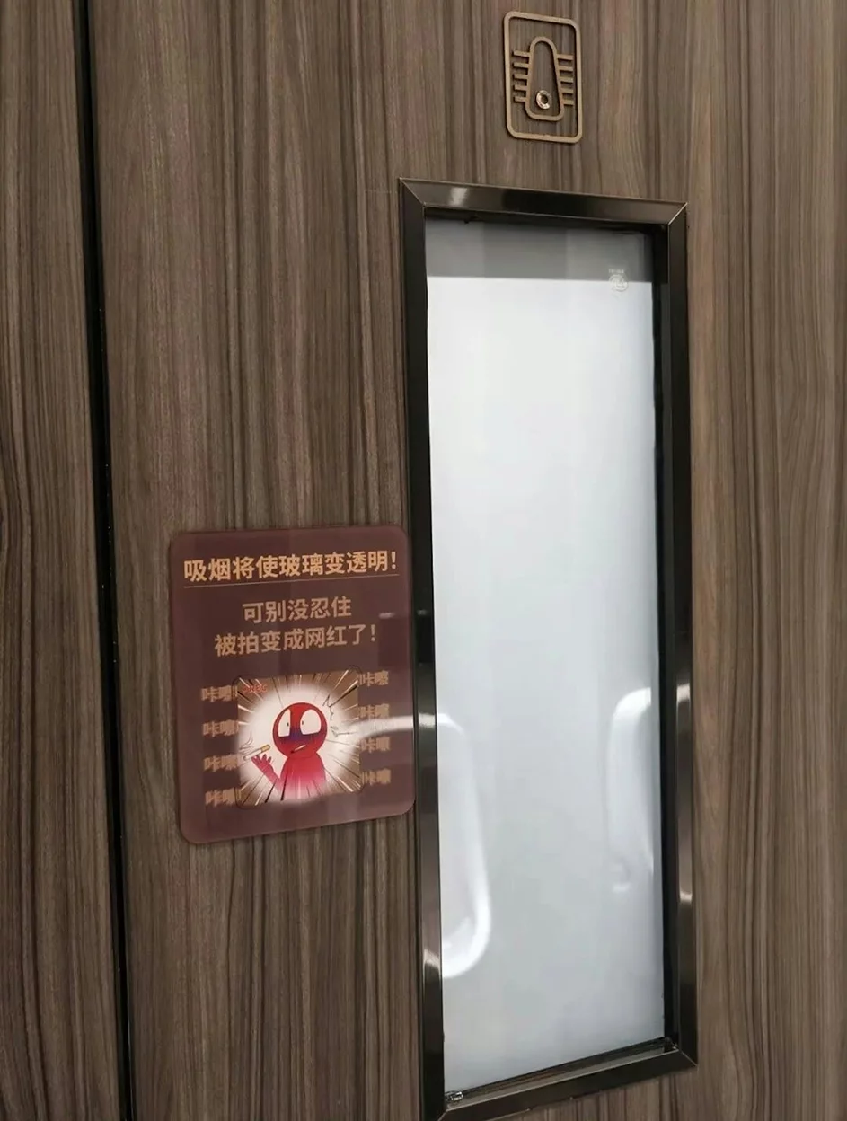 常规的贴条子、语音播报之所以没用,是因为反馈链条太长(抽烟 -> 被投诉 -> 管理员来 -> 劝阻)。这个设计将反馈链条压缩到了零延迟,直接击穿了用户的心理防线,相比雇佣专人巡查或安装昂贵的监控设备,一次性安装智能玻璃系统的性价比更高。