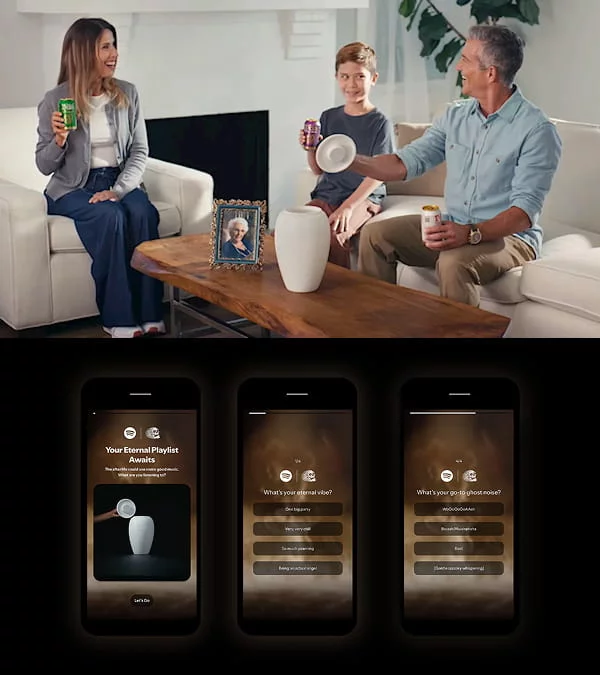 这不是愚人节新闻!Spotify 和硬核饮料品牌 Liquid Death 联名推出的「永恒歌单骨灰盒」无线蓝牙音箱。你可以通过 Spotify 的专属 H5 页面,结合自己的听歌历史和趣味问答,生成一份专属的「来世」歌单,这份歌单会同步到这个骨灰盒音箱中循环播放,为死亡这一沉重话题披上了一层荒诞又真诚的外衣。虽然这个骨灰盒音箱具备基础容器功能,但官方不建议用于盛放真实骨灰。只能说,离谱但又挺会玩。
