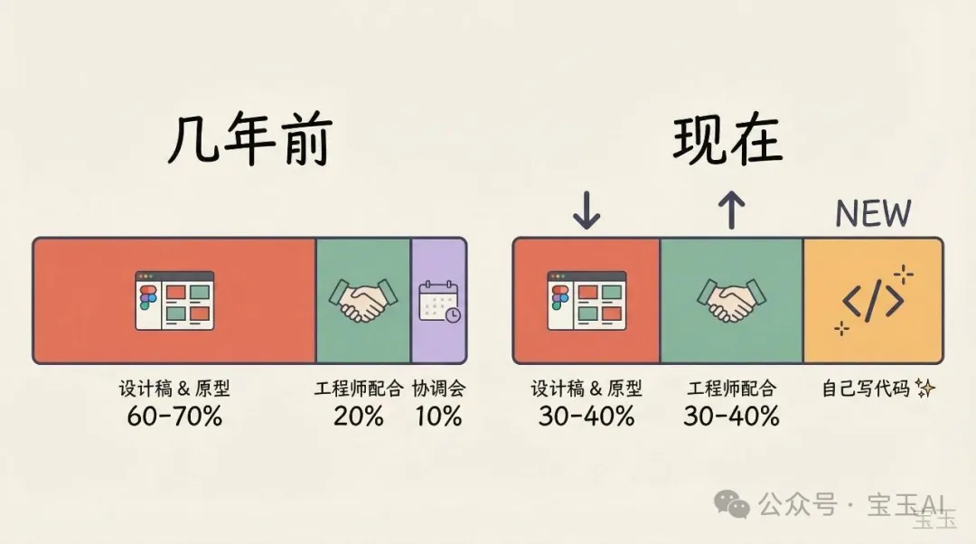 Anthropic 的设计负责人 Jenny Wen 在 Lenny’s Podcast 上分享了一个颇具震撼性的观点:传统的设计流程已经走到了尽头。随着工程速度提升,设计师用于绘制设计稿的时间从 60%–70% 降至 30%–40%,更多时间投入与工程师协作,甚至需要亲自上手写代码。