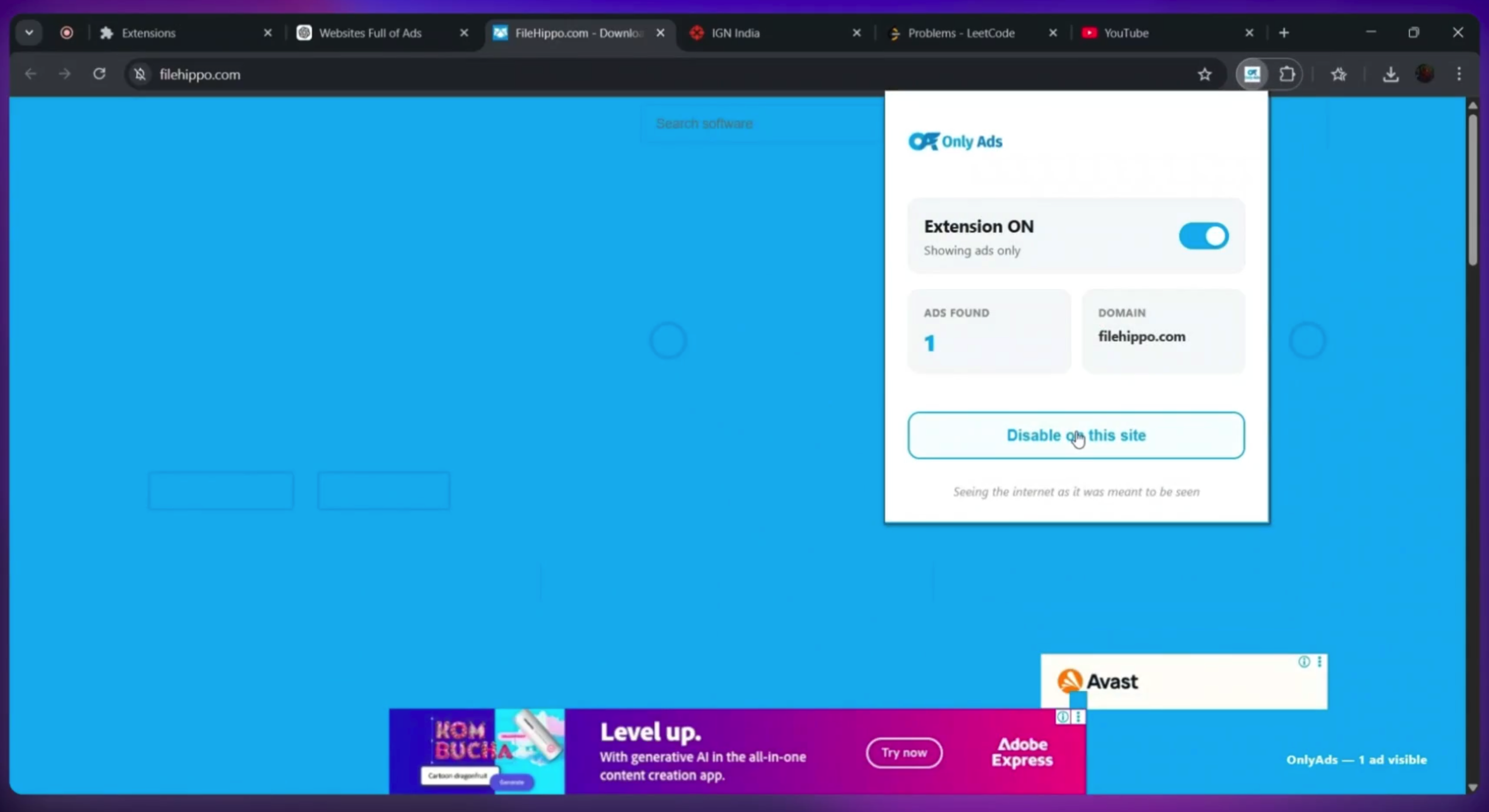 OnlyAds——只显示广告不显示内容的浏览器扩展