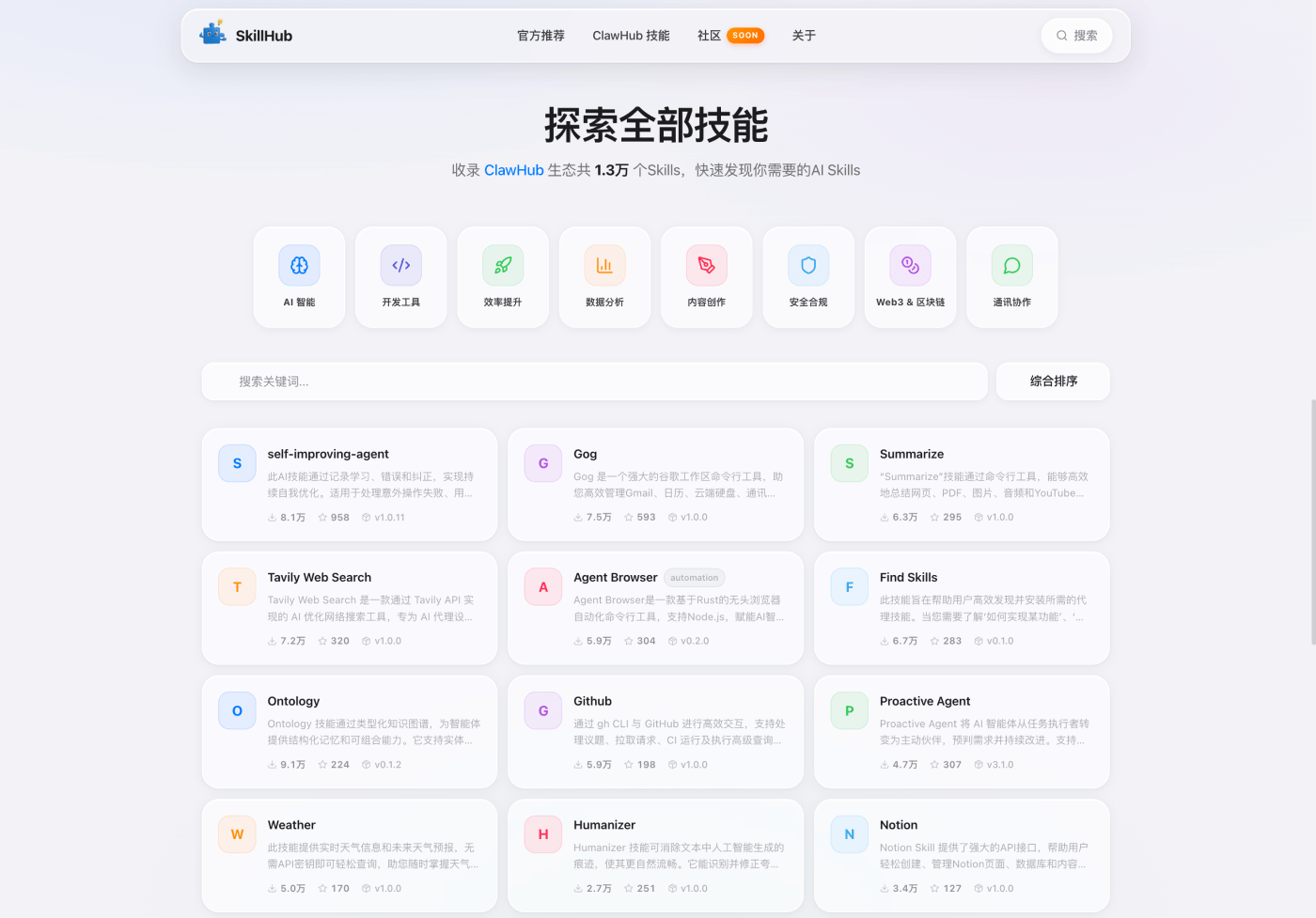 专门精选众多高质量的 AI Skills,经过了安全审核,大家可以放心使用。用户在这里可以找到小红书自动化工具、语音转文本服务等多种实用技能,帮助大家提升工作效率。